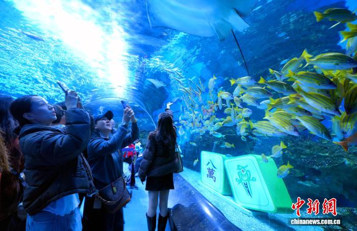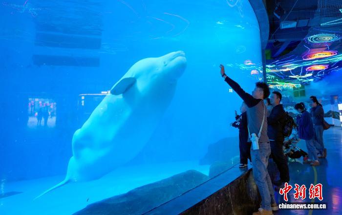 图为搭客正在鲸豚馆观光。中新社记者 安源 摄