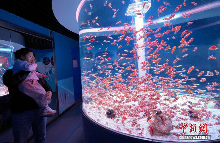 (新春走基层)四川成都:民众在成都极地海洋公园里过新年