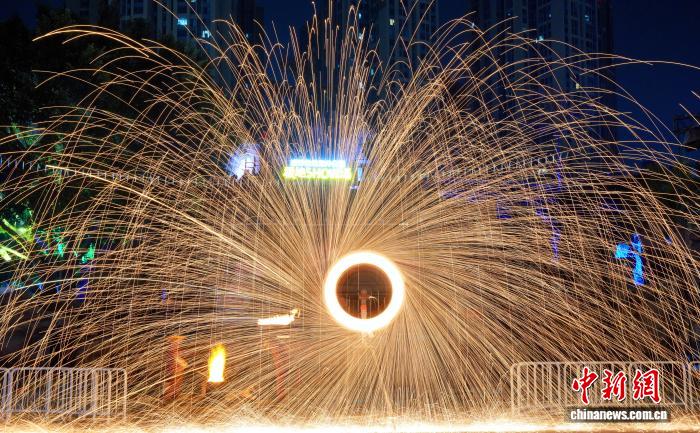 图为挨铁花上演。中新社记者 安源 摄