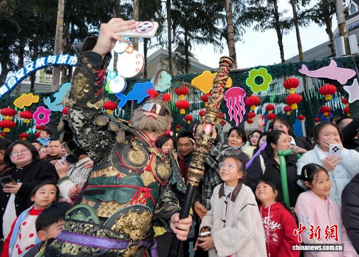 图为“全天年夜圣”饰演者取搭客互动。中新社记者 安源 摄