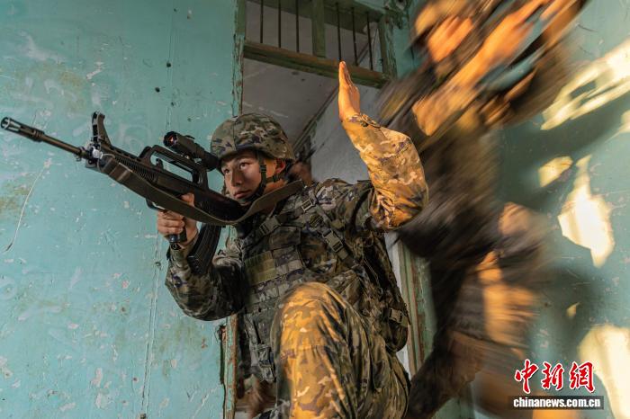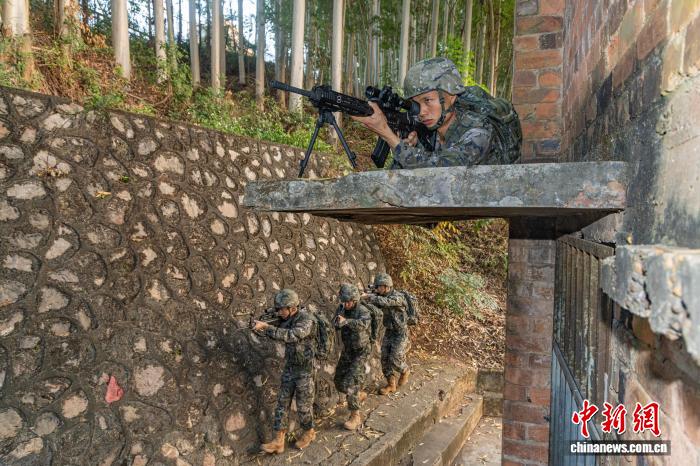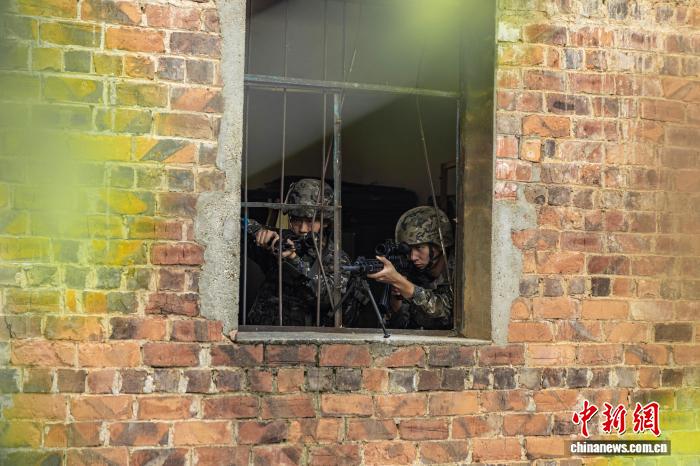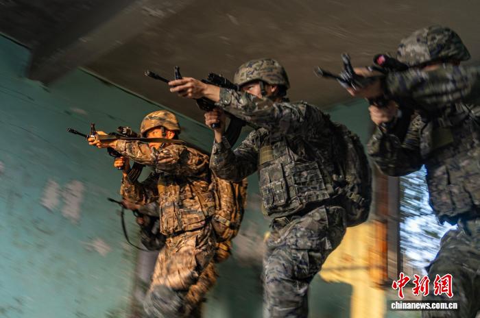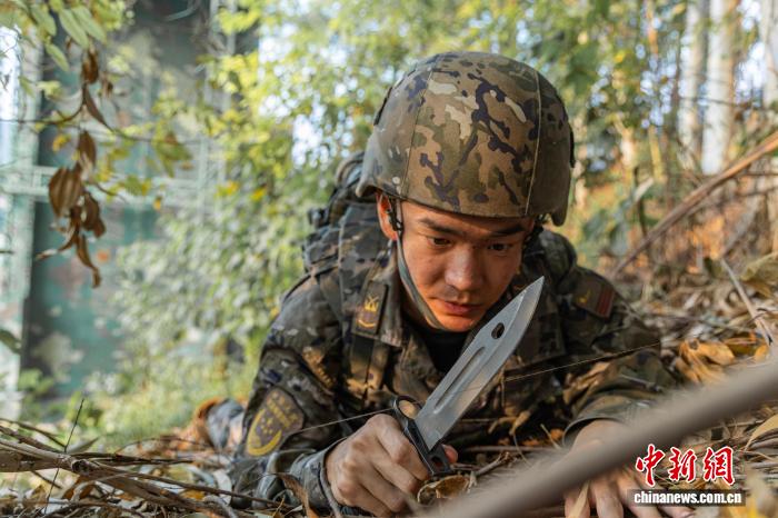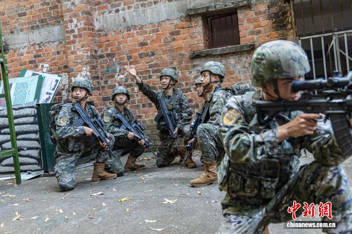 图为武警民卒正正在钻研战法。何家龙 摄