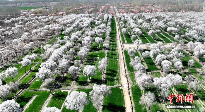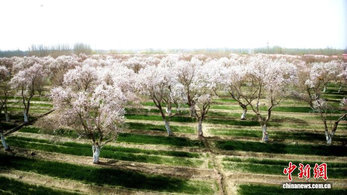 图为数10万亩巴旦木花海绵亘成片。韩亚伟 摄