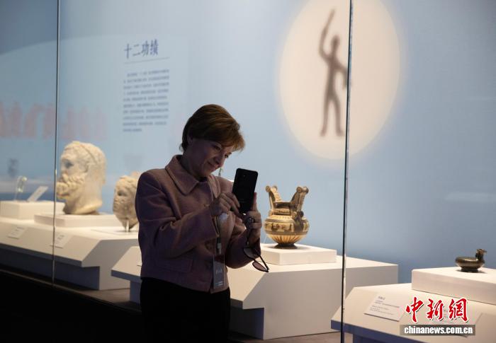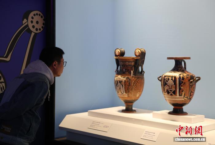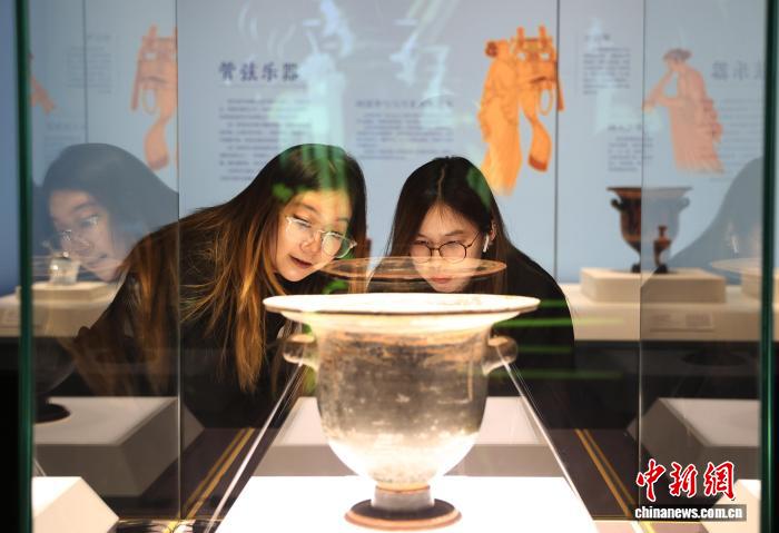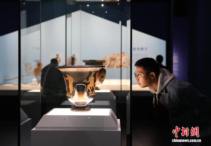 图为市平易近正在专物馆内乱观光阿普利亚式白画萼形调酒缸。中新社记者 于晶 摄