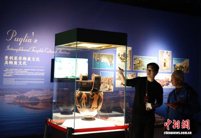 图为市平易近正在专物馆内乱观光阿普利亚式白画鱼盘。中新社记者 于晶 摄