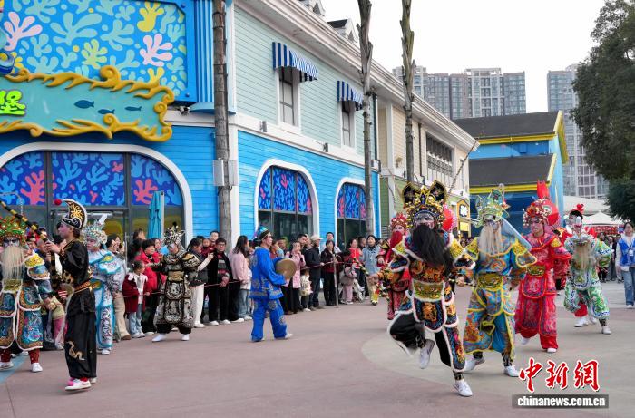 (新春走基层)四川成都:民众在成都极地海洋公园里过新年