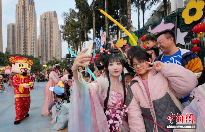 图为“全天年夜圣”饰演者取搭客互动。中新社记者 安源 摄