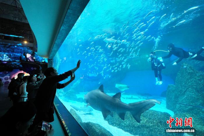 图为搭客正在鲸豚馆观光。中新社记者 安源 摄