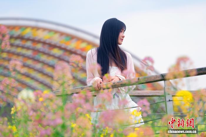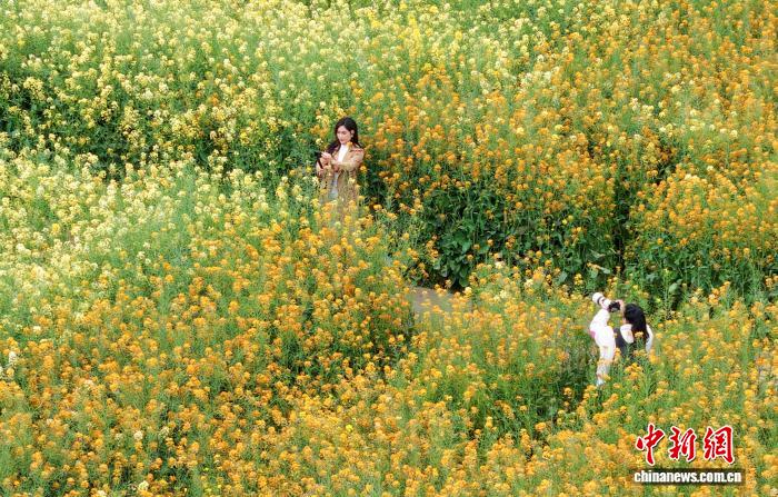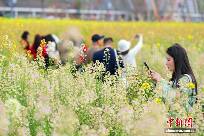 3月10日,位于4川省成城市新津区的华夏天府农业专览园里,黑色油菜花开放,布满着浓浓的秋意,吸收游人观光。图为搭客拍摄黑色油菜花。中新社记者 安源 摄